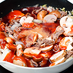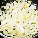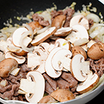 タマネギが透きとおってきたら、マッシュルームを入れて、一度火を止めます。