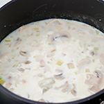 鍋が温まってきたら、マッシュルームを入れて、ひと煮立ちさせます。