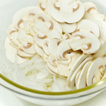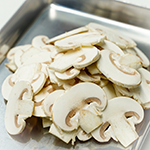 マッシュルームは包丁やスライサーなどで2mm程度にスライスします。
